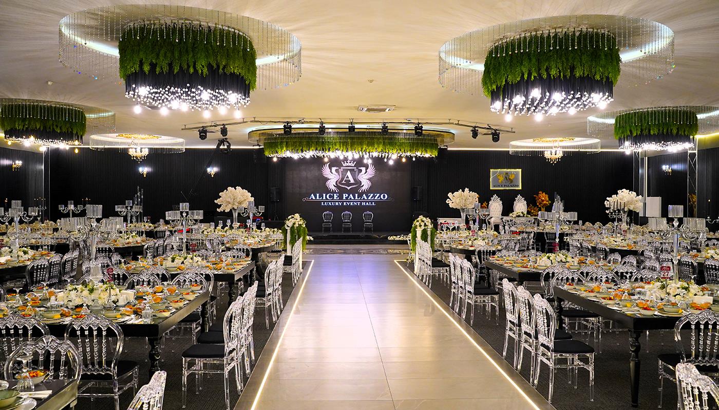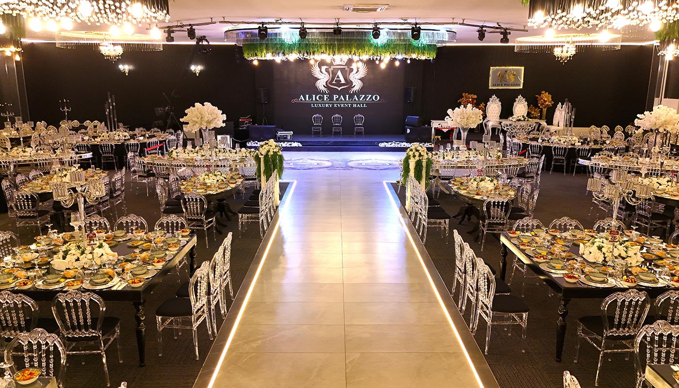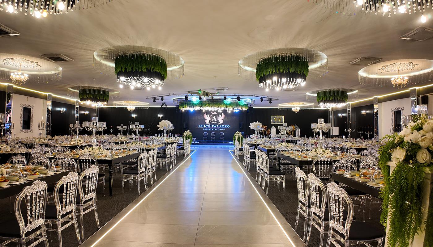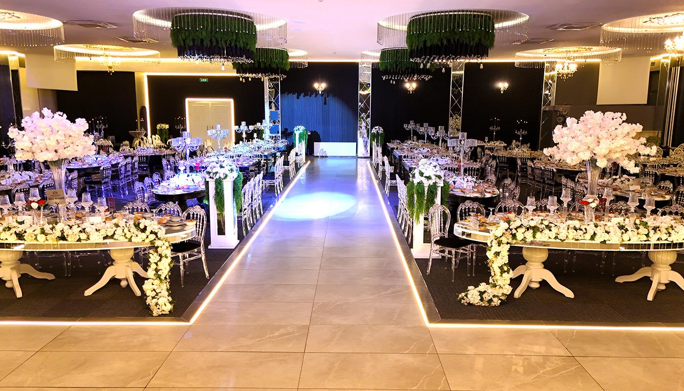 Işıklandırma teknolojilerimiz, zarif masa düzenleri ve etkileyici sahne tasarımımız, düğününüze görsel bir şölen havası katar. Yüksek tavanlı ferah salon yapısı, misafirlerinizin rahatça hareket edebileceği ve tüm töreni keyifle takip edebileceği bir ortam sunar. Şıklık ile modernliği bir araya getiren konsept seçeneklerimiz sayesinde her zevke hitap eden bir atmosfer oluşturulabilir.